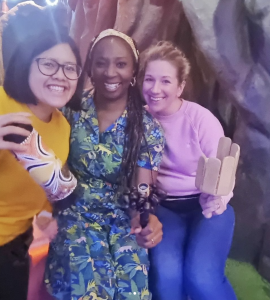 I was also asked to be part of the show and filmed telling an Anansi story with children aged 5-7 years old. The idea was to show storytelling in action! In these photos are Holly Shepherd (Producer) and Luk Ying Yick (AP). Filming on the set at the Discover Children’s Story Centre. The children were fabulous and although we rehearsed, rather than it being impromptu as it would be in real life, they sparkled at bringing the story to life with their ideas and joining in my call and response. It was very hard to chop the story down. I’m a natural wordsmith. I embellish everything and use at least five words when I could easily use one 😆